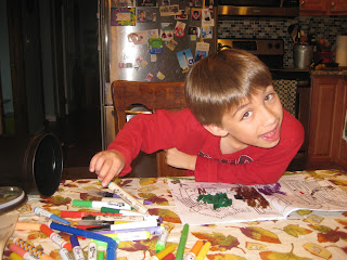 Benjamin has really been into coloring lately, which, of course, means Paul has been coloring a lot too. Benjamin loves to use markers because they don't ever use them at school. Paul learned how to write the letter "P" recently, so he spends a lot of his coloring time making P's. "Line down, and a bubble."